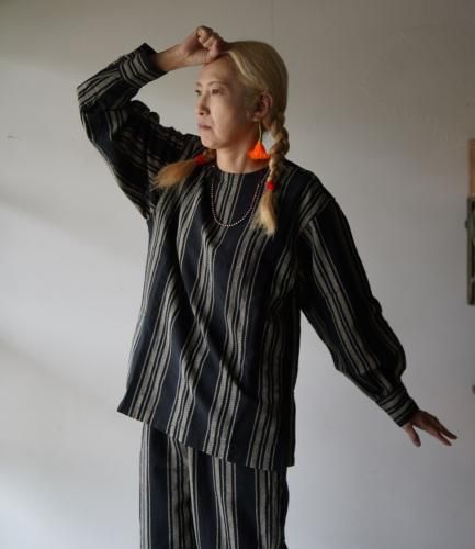 脇にはお馴染みのクルタポケットが付き、スリットから頭く袋布がを思わせるようなデザインに。1年中着れるシンプルな定番が出来あがりました。